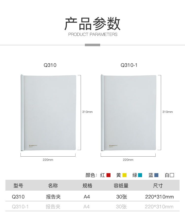 COMIX Q310 報告夾 文件夾 A4 抽杆式 容量30張