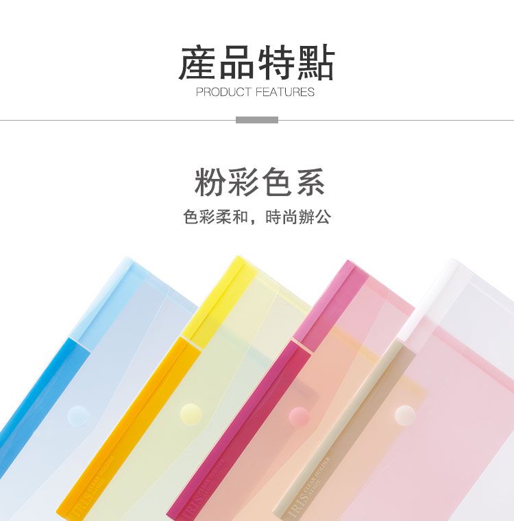 COMIX A1769 粉彩粘扣袋 PP 快勞套 文件袋 A4